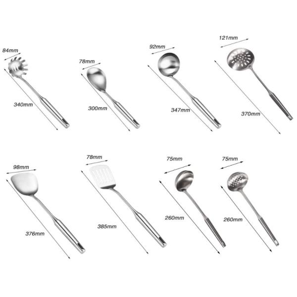304 Stainless Steel Kitchen Utensil Sets , 8pcs Metal Cooking Utensils Set Images |